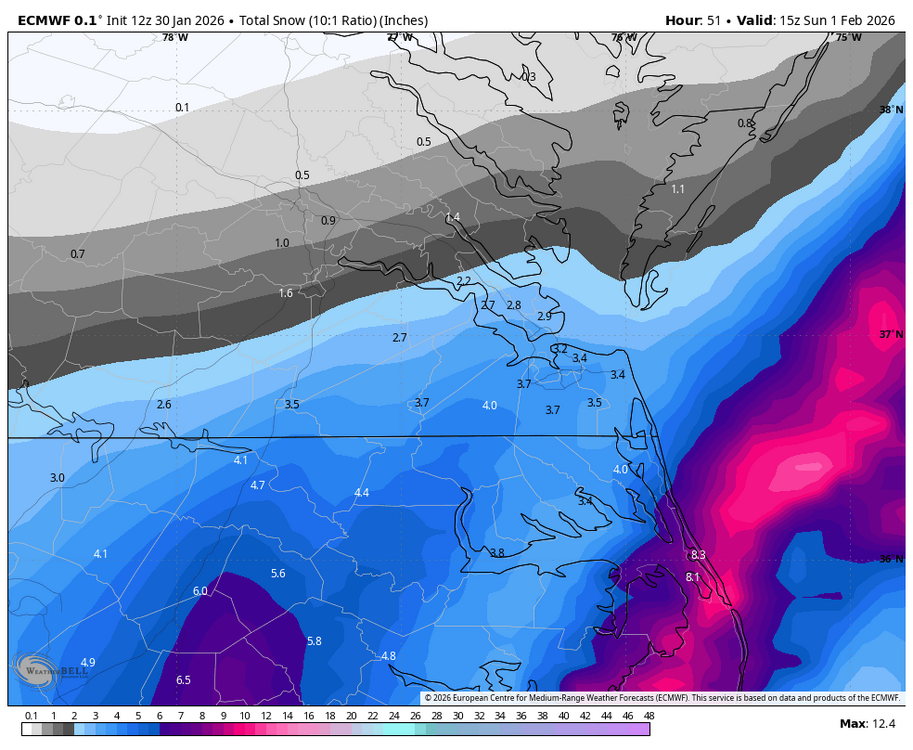 we might have to start including ORF in the snow contest tie breaker. Funny when I lived there for 10 years it mostly sucked for snow. If you are a snow lover in ORF you need the patience of a monk. -