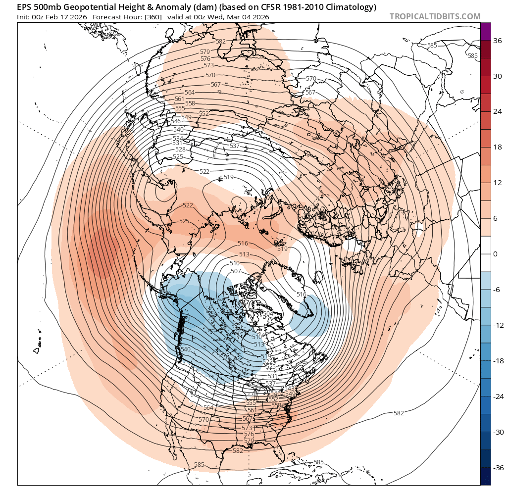 ^Pretty warm look. Models haven't really been verifying that pattern this Winter though - let's see if it holds as we get closer, but +nao/+epo combo can be pretty warm and sustained for a little bit of time. -