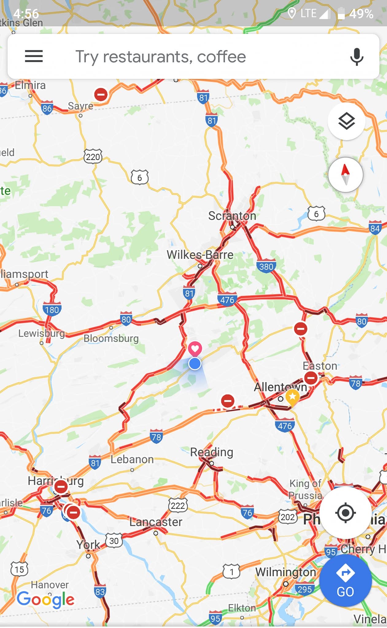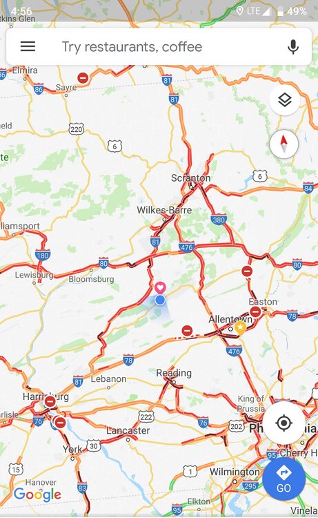 I was driving bus back then and since we weren't super busy, I had a scheduled day off that day. Our lady driver wasn't so lucky, and had an NYC run that day. She said she had one hell of a drive back home that evening. I screenshotted Google Maps around supper time when it was the worst, and I'd not before (nor since) seen that many red roadways. It was a region wide driving disaster. The only other time it might have looked as bad, or worse, would have been VD 07, but I don't think we had Google Maps back then. -