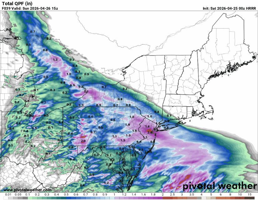 3. As usual the highest rainfall totals pushed way to the NE over the ocean East of NJ. However, Mount Holly is still bullish. Rainfall totals through tomorrow, will range from around 1 to 1.50 inches across much of the area with localized higher amounts. While this may be unpleasant, especially since it will be over the weekend, it is good to remember that this is a beneficial rainfall.