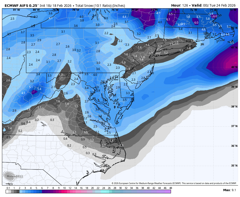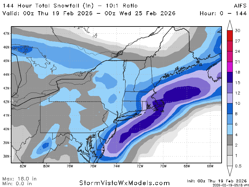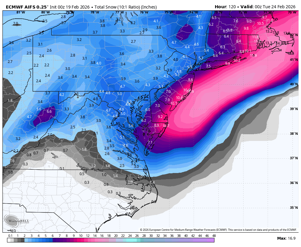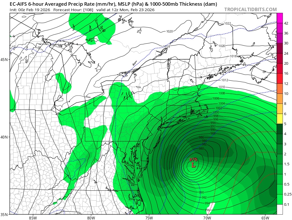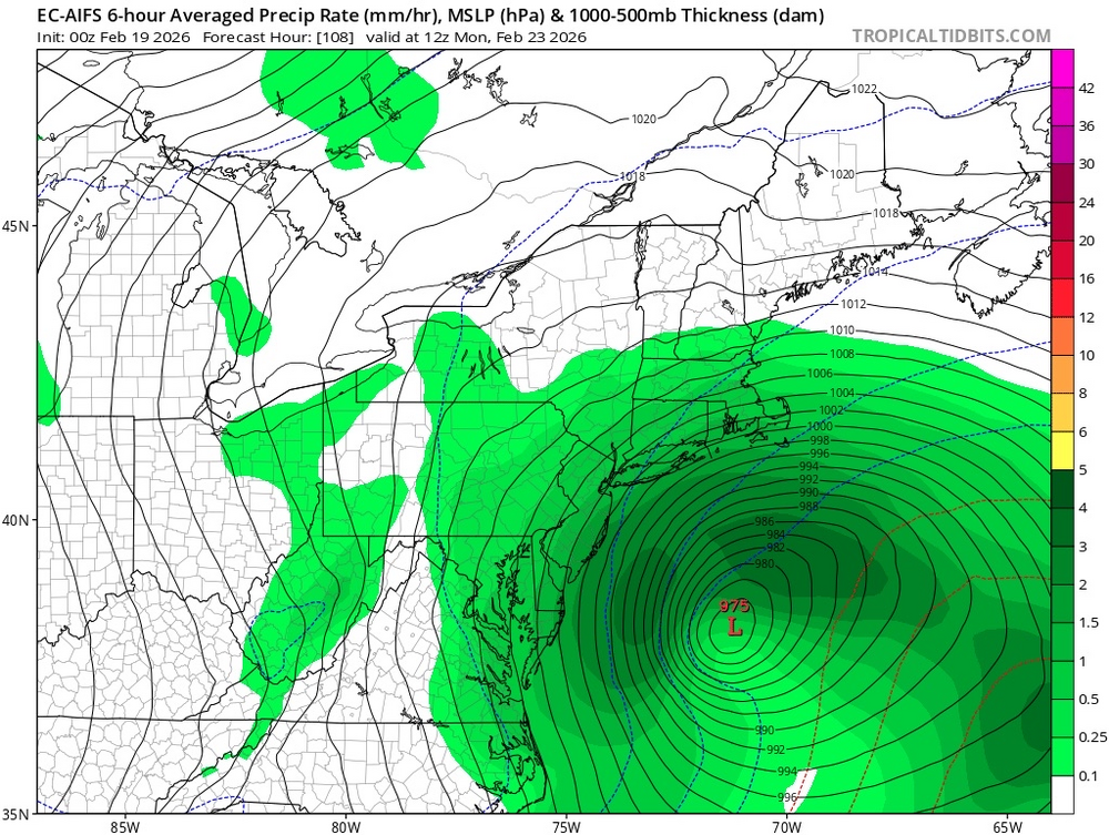 The big takeaway of the Euro AI is that, while snowfall isn't great, Boston gets a blizzard. That means the synoptics are MUCH BETTER.