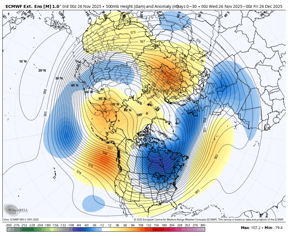 The weeklies keep slowly amplifying the Scandi ridging toward the North Pole over the course of December. They pop a western ridge too in week 3. That would be pretty sweet.
