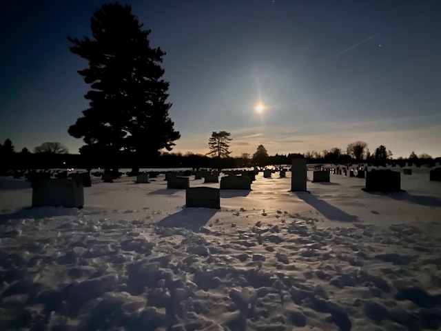 I did a full moon cemetery walk last night. I only took my gloves off a couple of times because it was so blustery and cold.