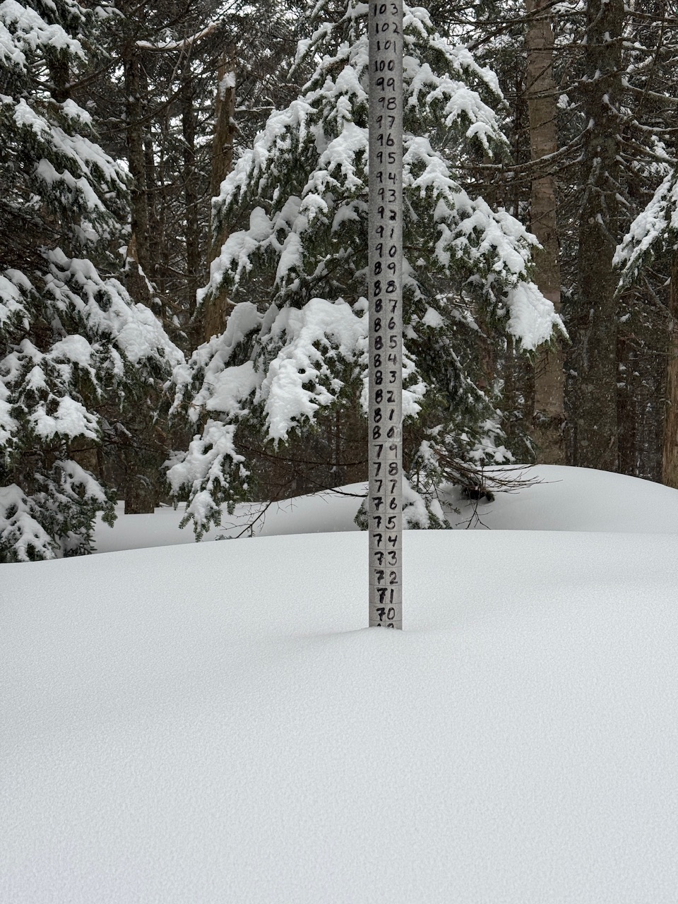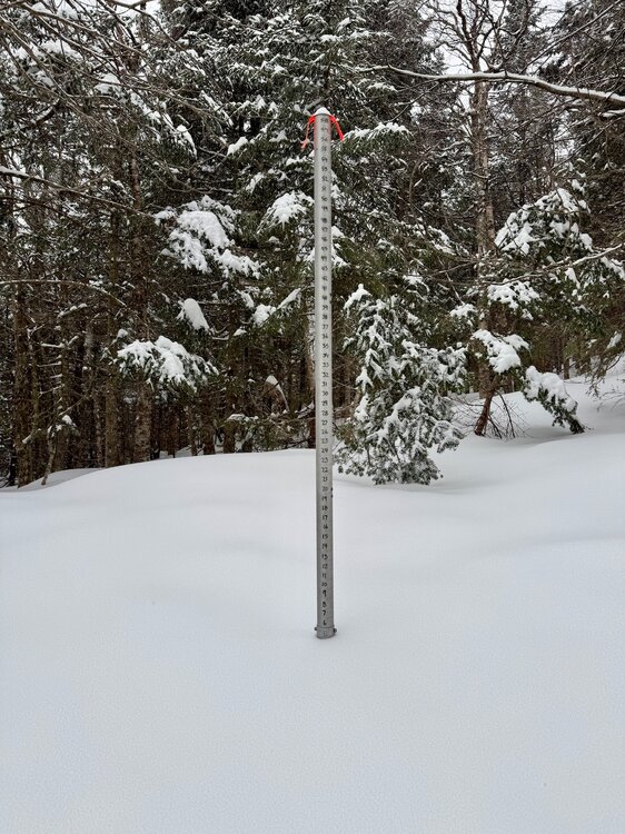 Manifested that pretty well. 5” of dense stuff on probably 0.6-0.7” QPF. Pretty crazy we’ve gone from 55” depth back up to 70” depth in the past 4-5 days on 15 inches of measured snowfall. Zero settling. 15” snowfall over 4-5 days and 15” depth gain. Concrete.
