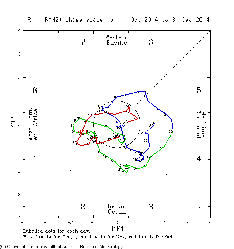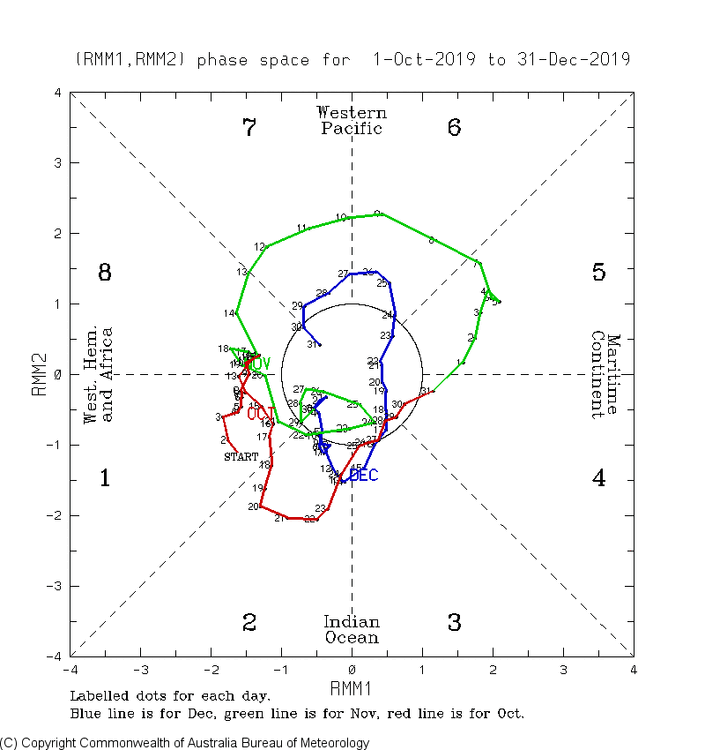 Whereas there can be a lag, the diagrams by phase are based on concurrent temps. So, phase 8 being the coldest in Dec is based on temps during phase 8 being the coldest of any phase rather than with a lag.