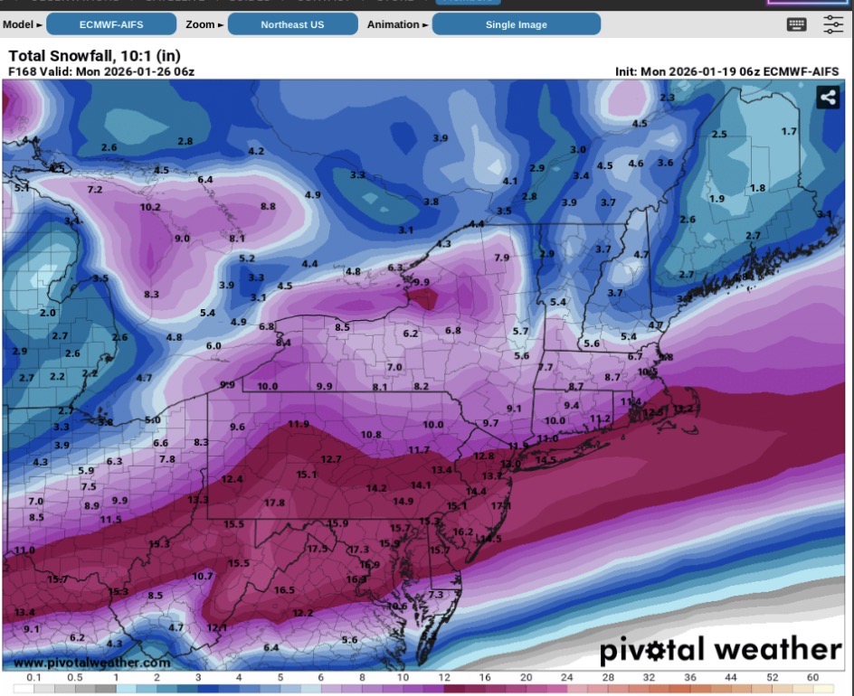 Ensembles are North and the AI models are way North. AIFS is a massive hit here and the AIGFS is a crippling ice storm respectively: -