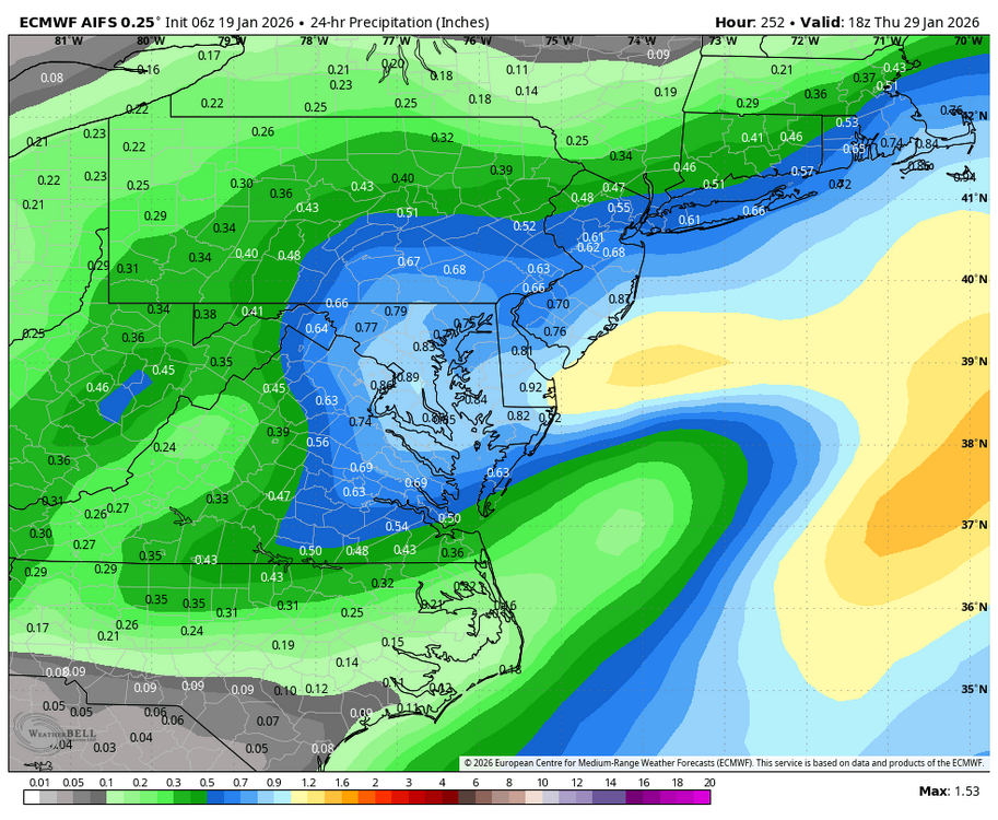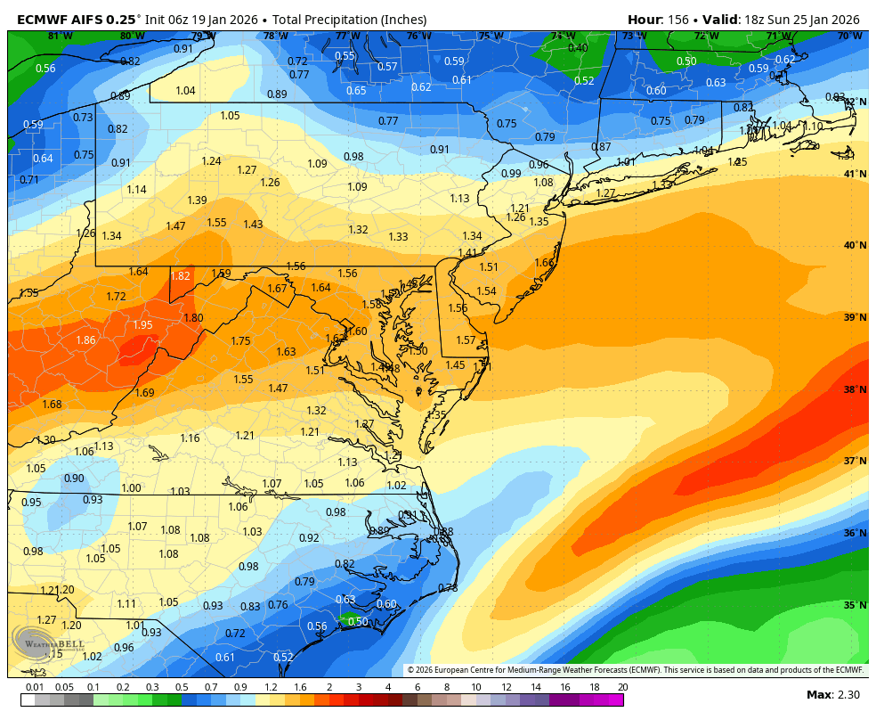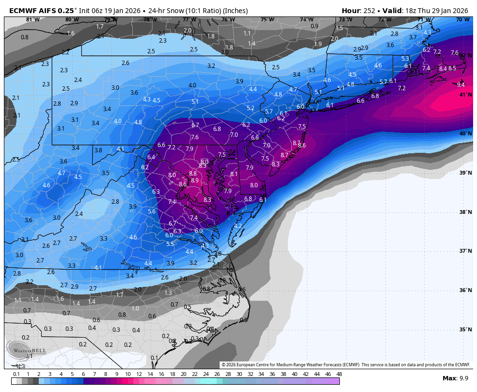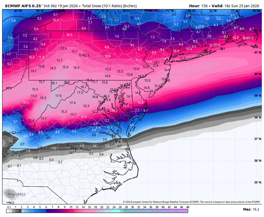 AI guidance im told have good verification scores at this range. This is right now at day 6 considered their wheelhouse. I am still concerned about suppression in this pattern but having some reliable guidance continue to move North makes me feel a little bit better. I will say im my experience, 90% or more of the time, these high pressures or extreme cold tend to be overdone and things in general come North as we approach game time. This may be the 1 out of the 10 times though...so Im playing it cautious wrt my expectations. -