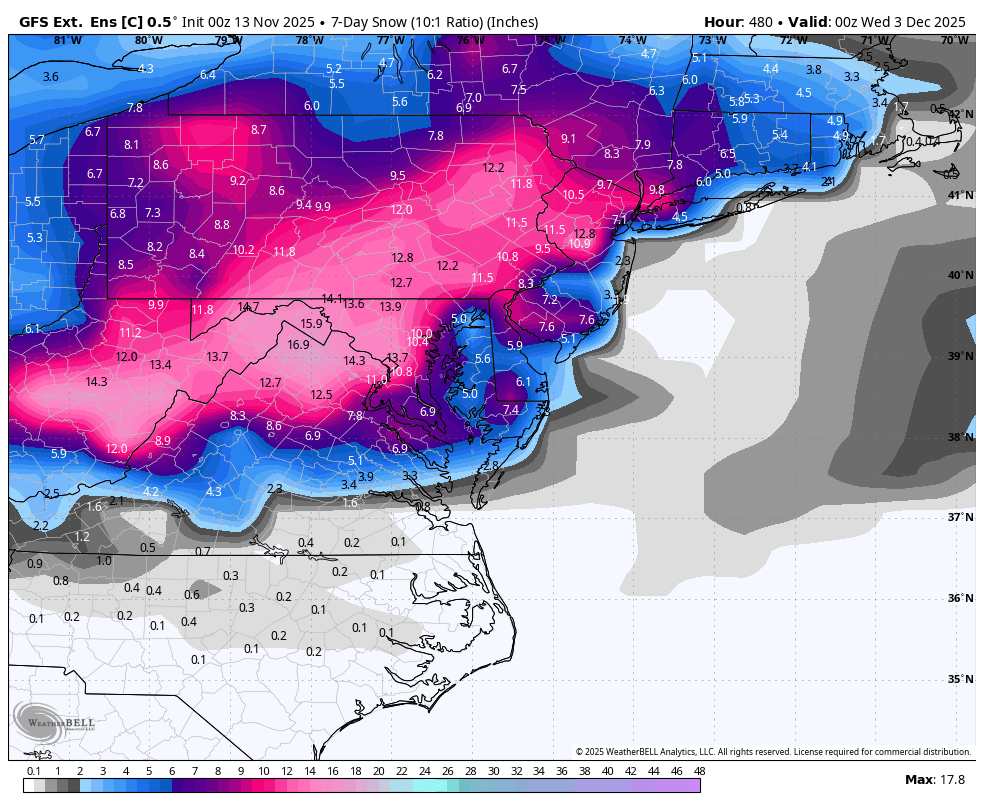 10. I had the second week of December as go-time in terms of snow for my area given analogs...still feel that way. It will be a slower than expected progression of the cold to the east given the RNA.