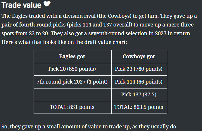 Maybe a little steep but it wasn't a deep draft and 2 4th rounders...meh, I was ok w/it. I don't know exactly how they calculate "points" but it seems like a even trade...