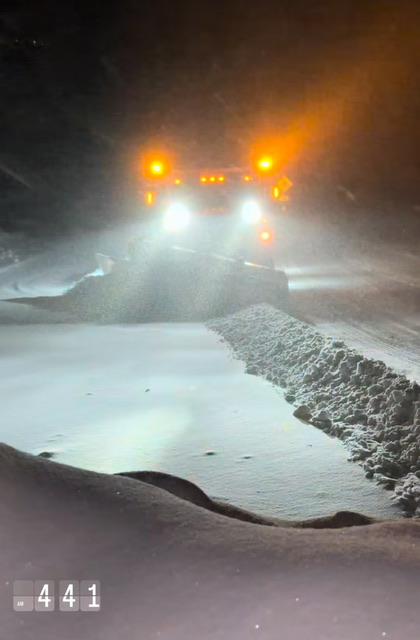 4” overnight, 5” measured in 24 hours… fellow reporter MT checking Barnes Camp stake in the base area pre-dawn while VTRANS plows.