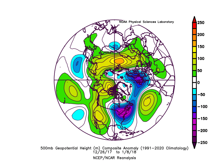 This is due to inadequacy of relying on the standard teleconnections with patterns like this. It was a weaker version of January 1994 and 2004. Those patterns were colder and sustained for a month instead of 15-20 days like this one was. While it doesn’t have a formal name, the key driver of the cold was the 500mb block north of Alaska. That is a very cold teleconnection in the East. You can find other examples such as 12-26-17 to 1-8-18. This was the coldest 16 day period around NYC Metro since then. Minimum 16-Day Mean Avg Temperature for WESTCHESTER CO AP, NY Click column heading to sort ascending, click again to sort descending. 1 16.8 2017-12-26 through 2018-01-10 0 2 16.9 2017-12-25 through 2018-01-09 0 3 17.1 2017-12-24 through 2018-01-08 0 4 17.2 2026-01-24 through 2026-02-08 0 5 17.5 2026-01-25 through 2026-02-09 0 Minimum 16-Day Mean Avg Temperature for LAGUARDIA AIRPORT, NY Click column heading to sort ascending, click again to sort descending. 1 20.8 2017-12-26 through 2018-01-10 0 2 20.8 2017-12-25 through 2018-01-09 0 3 20.9 2026-01-24 through 2026-02-08 0 Minimum 16-Day Mean Avg Temperature for NEWARK LIBERTY INTL AP, NJ Click column heading to sort ascending, click again to sort descending. 1 19.7 2017-12-26 through 2018-01-10 0 2 19.7 2017-12-25 through 2018-01-09 0 3 20.1 2026-01-24 through 2026-02-08 0