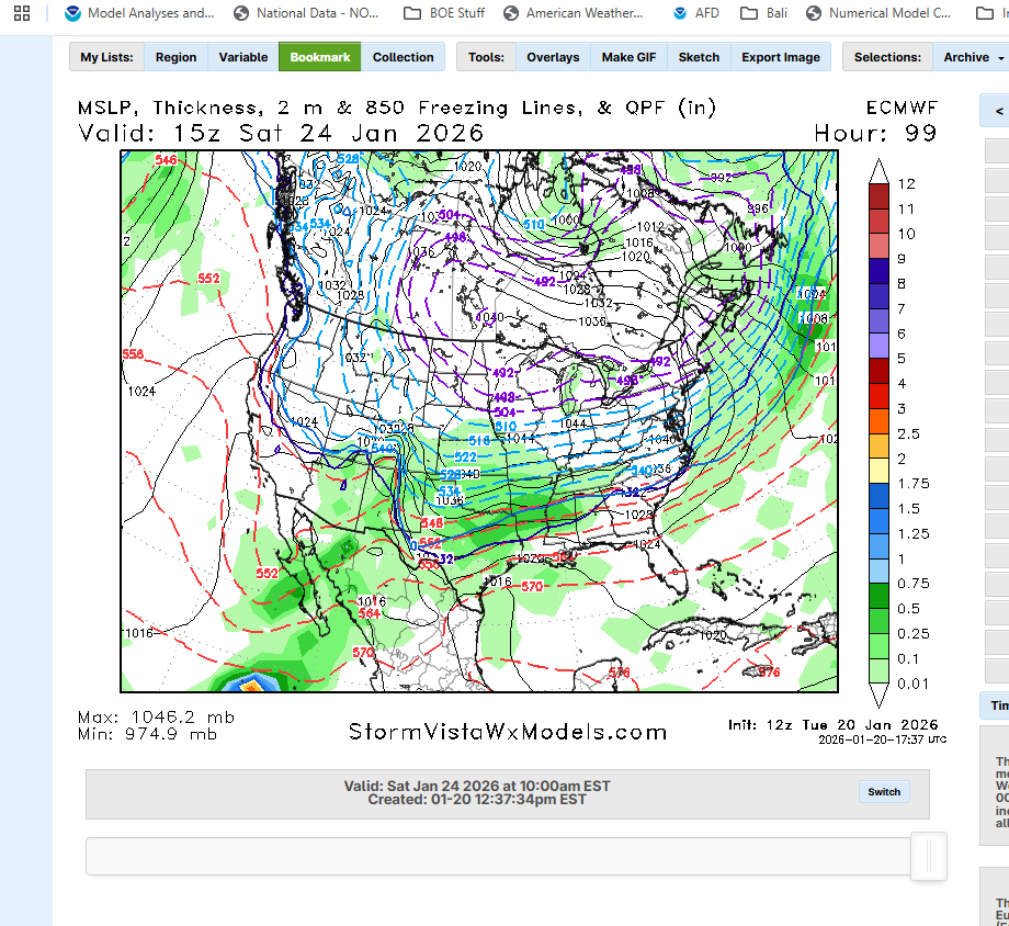 Euro AI is out and it's pretty similar. Main difference is timing a bit slower on the baha low. Overall impact on real weather is negligible as far as QPF output. The ultimate big dog would be a full ejection of the baha low with the PJ wave coming in behind. This would essential result in a more prolonged version of the storm. Also likely increase QPF and a SLP closer to the Atlantic coast/warmer air aloft. Not usually the most likely scenario. It's normally a partial ejection (95% of the time).