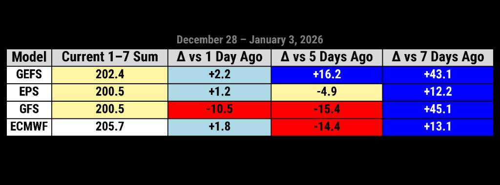 6. The historic January of 2025 looking better isn’t surprising as it had nearly wall to wall intense cold along with major winter storms in the SE and thus is always going to be hard to match in a general sense. The Euro Weeklies were much colder in the SE US for Jan at this point. Edit: But otherwise: 12Z ensemble means update for late week 2: good news overall for E US cold and also snow lovers: 1. GEFS H5 improved somewhat vs 0Z/6Z with a slightly higher PNA though it’s still a -PNA. The best news is that it’s significantly colder with BN temps and it’s snowier in much of the region. 2. EPS is very similar to the 0Z, which makes that good news because it’s chilly along with a nice +PNA. No caving whatsoever to the ugly 0Z/6Z GEFS.