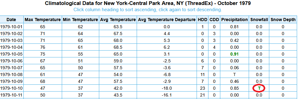 wow in none of these three DC October snowstorms did NYC get any snow?