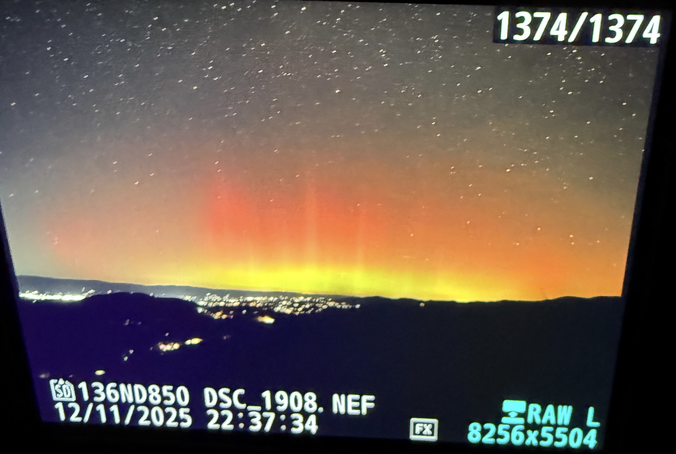 I did as well but at home I got this lousy drone shot with city light pollution in Raleigh and faint reds: