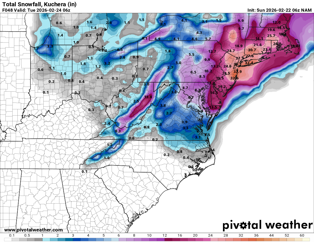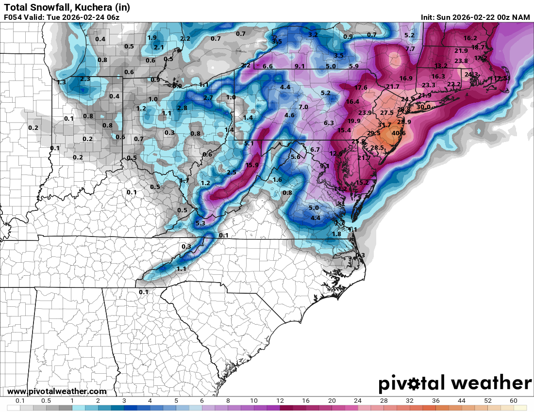 I think this is the first time NYC cracked 30 in a model run for this storm. Suffice to say this is quite a rare treat (even if it’s overdone).