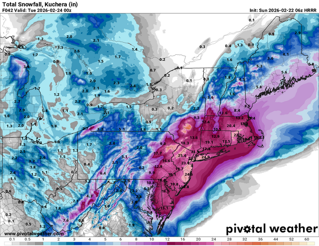 Could very well see someone between CT and Monmouth crack 3', if a persistent band sets up on the pivot. Going to be a very interesting final snow map. A lot of immediately coastal NJ may see totals (if they can be accurately guaged,) a bit on the lower side. Winds of this strength tend to compact snow depth during warmer snowfall. However, it also leads to some wild drifting. We will know in about 24 hours. Fun to watch.
