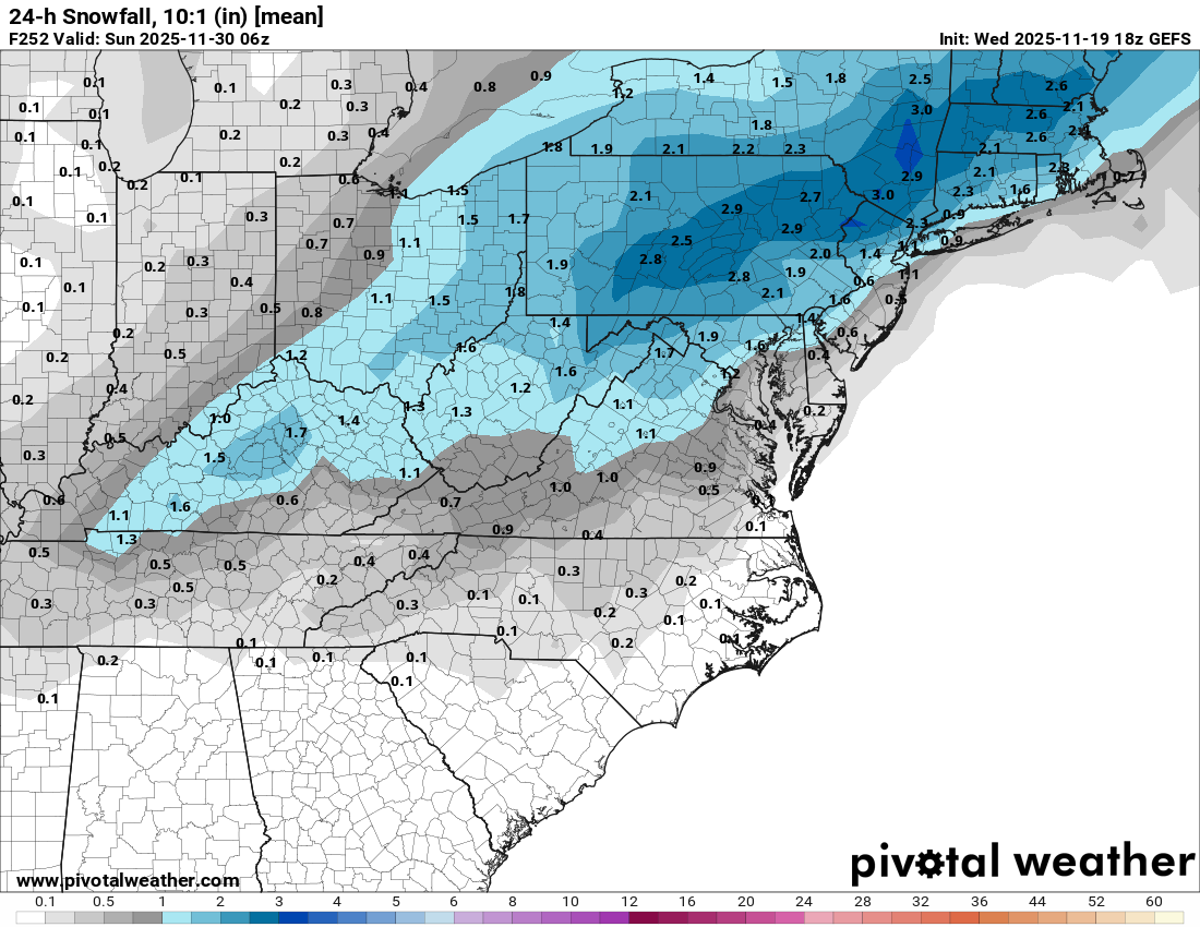 Respectable GEFS mean for this range in November, for the very little that’s worth. Can’t see individual members, would wager it’s pulling in a heavy outlier or two.