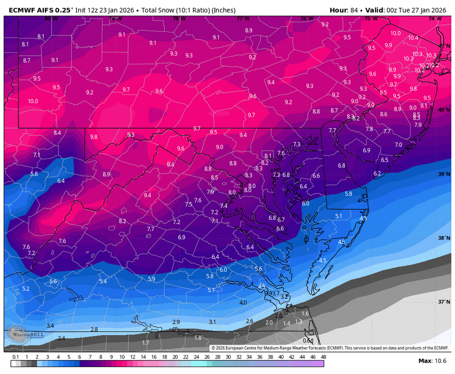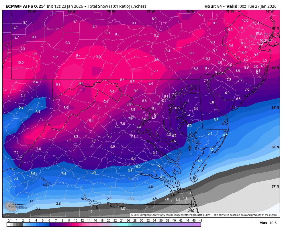 1/23 18z Euro AI AIFS otal QPF storm Total snow / sleet f (10:1) -