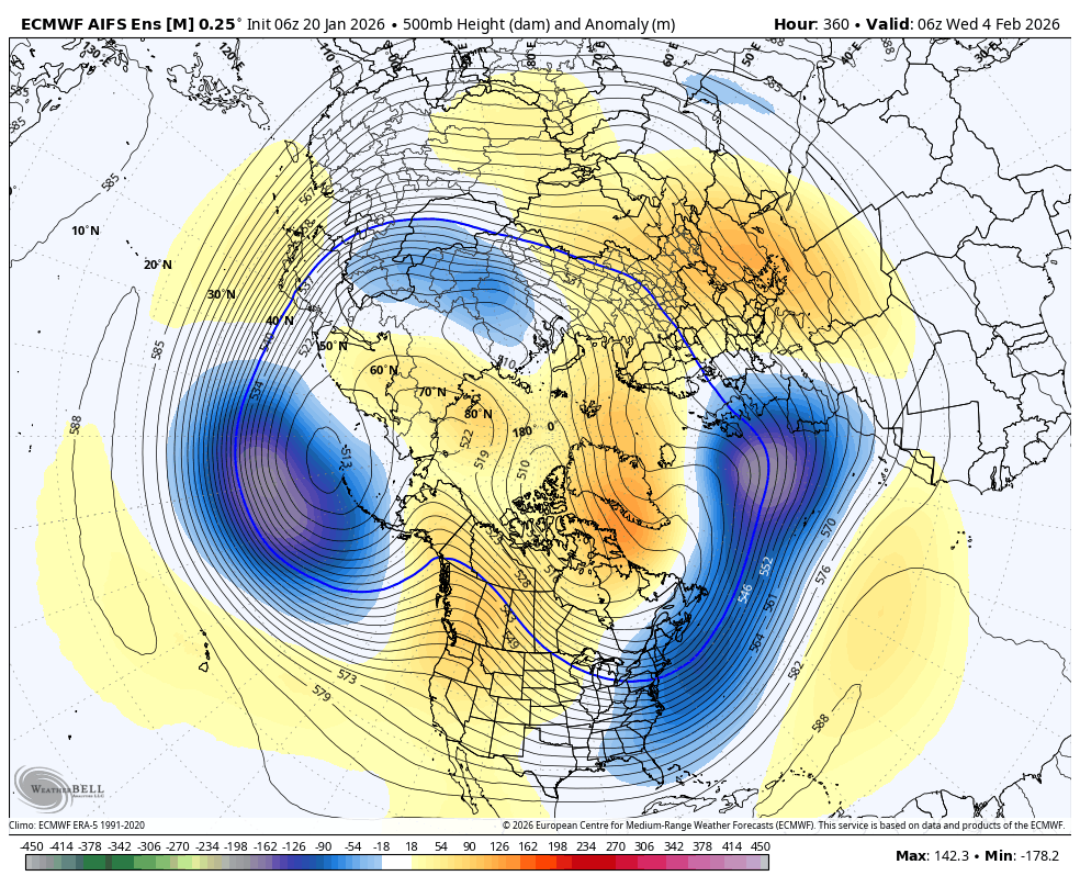 Nice to get a storm at the beginning of the pattern. All ens looking very Nino-like at the end of their runs. 6z AIFS as an example. May be a heater on the way!