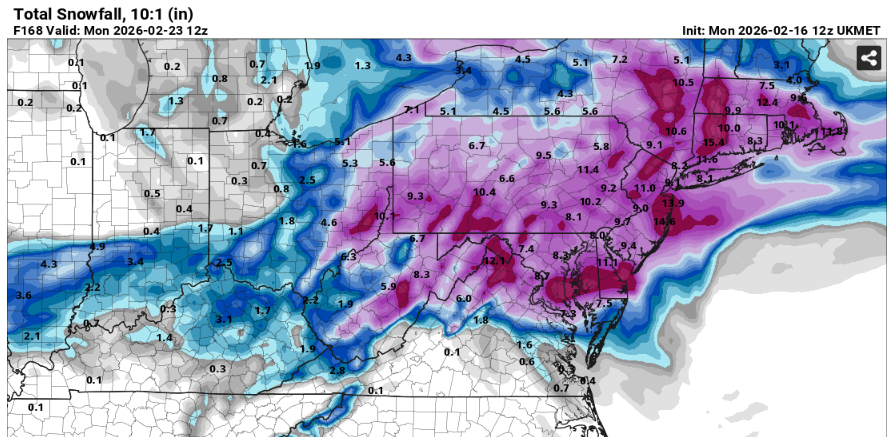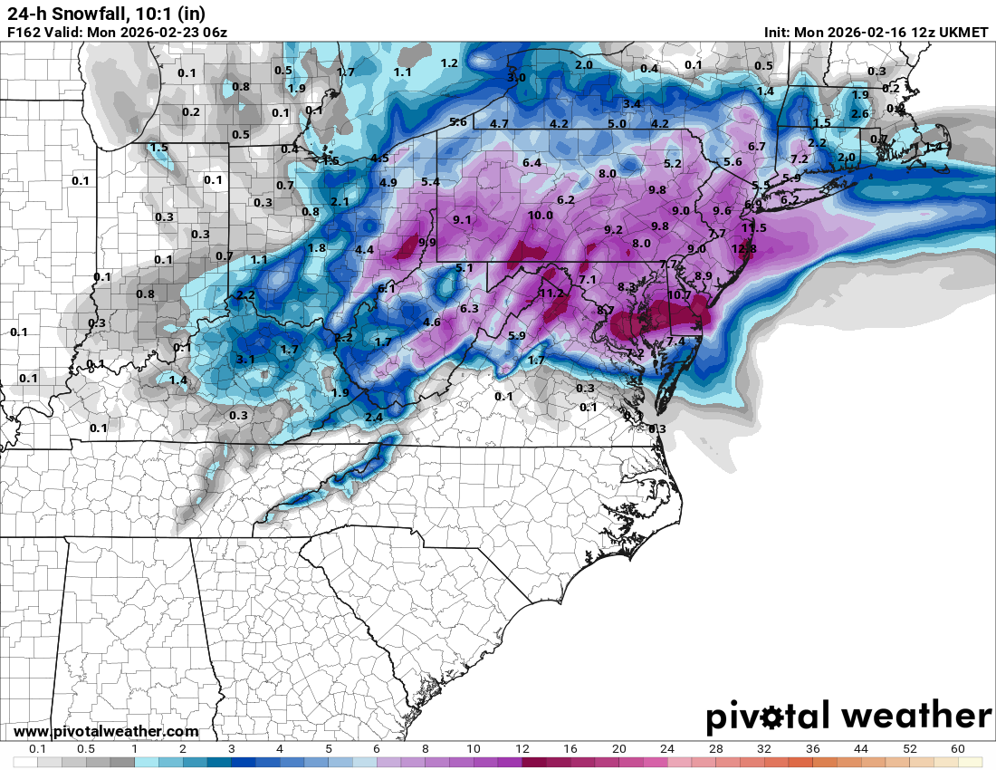 Starts as rain but goes over to 7-10” southern Md into Pa