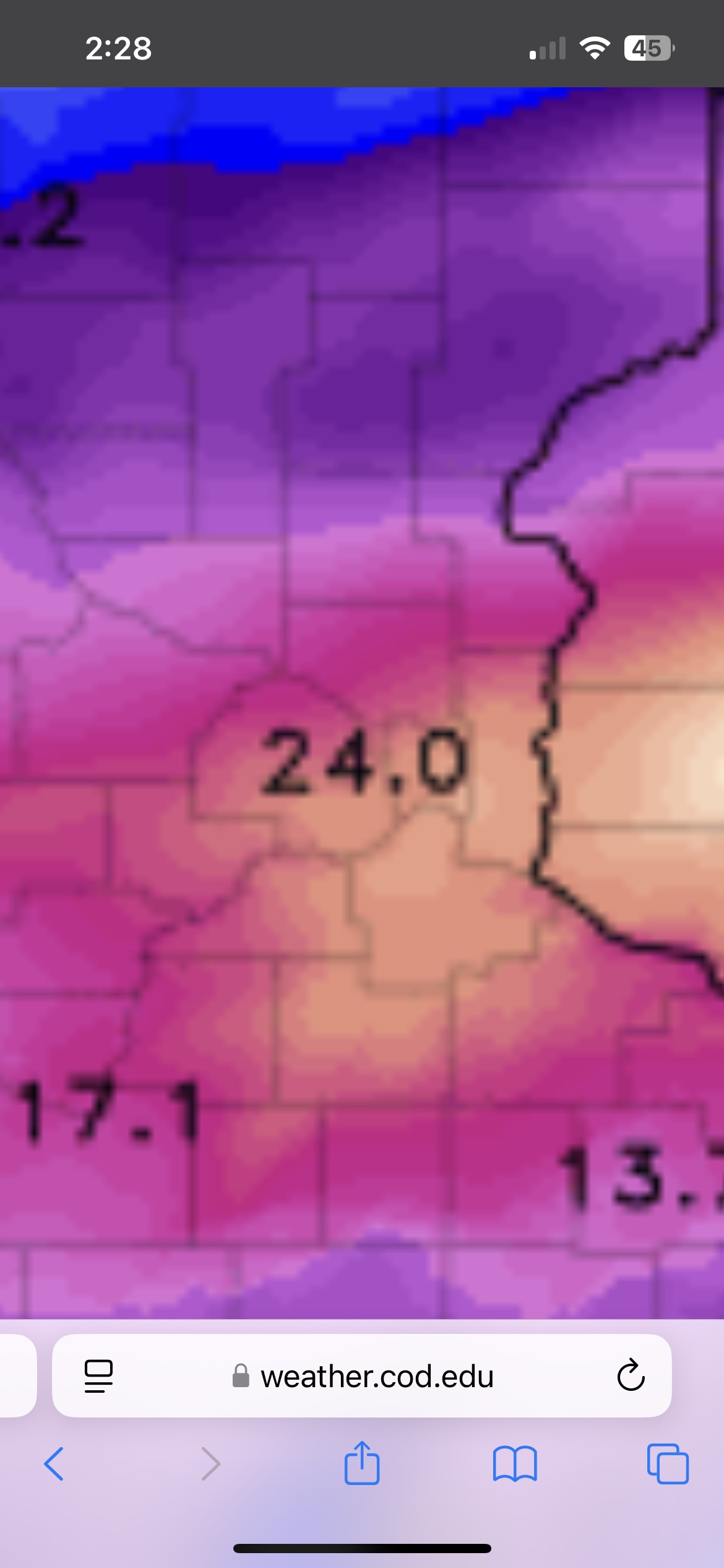 18z hrrr is one of the craziest things I’ve ever seen for us. Several hours of 2”+ rates, even pushing 3” for a while. The one thing that could really hamper our totals are the ratios. I wouldn’t be surprised if some of the ratios are under 10:1, maybe getting a bit better as the rates ease up but at that point the winds will ramp up and compact things too. .