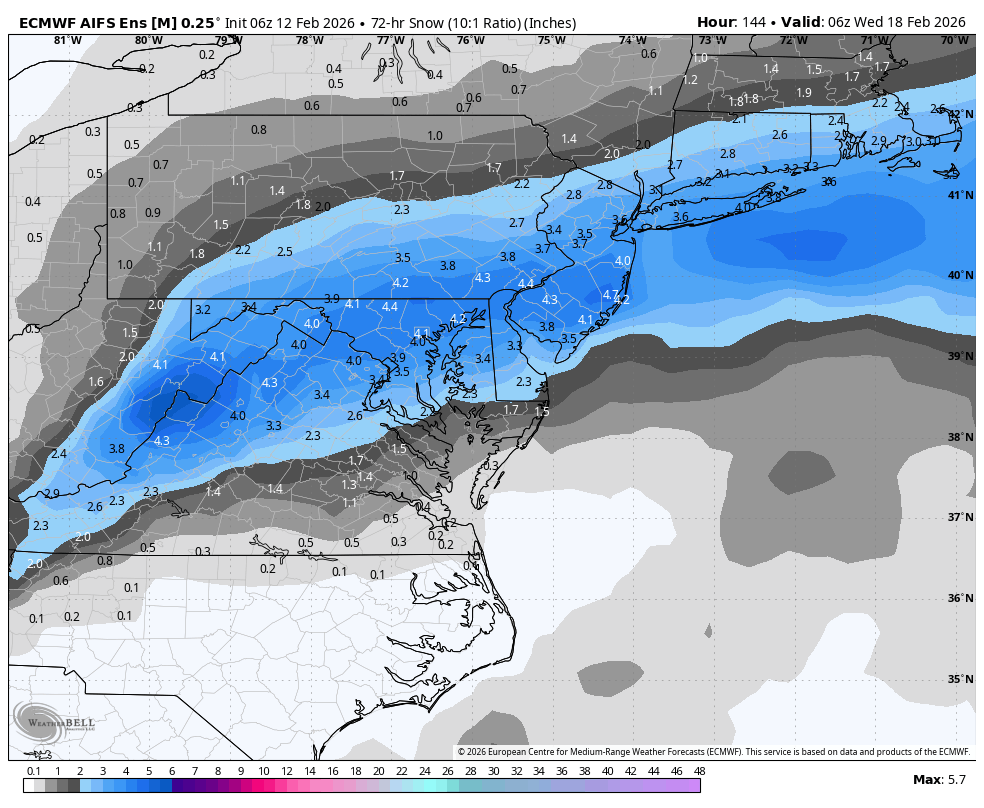 19. EPS is a 3.4" mean in Philly, 55% chance of P > 1", compared to only 33% at 6z