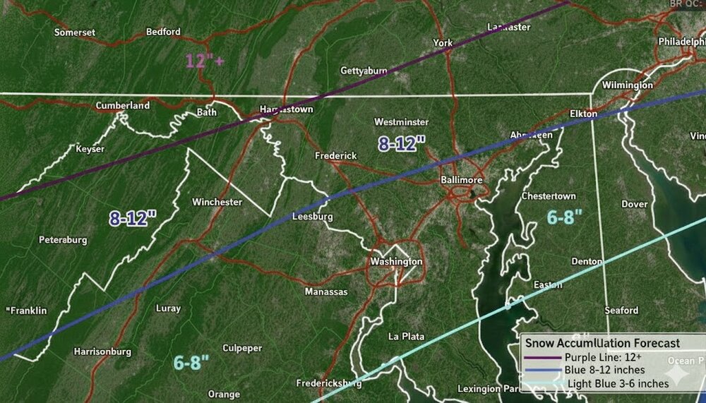 Updated map. Will this pan out? No clue, but that's why I'm not a met. Some minor tweaks from the last one, and unless we see major trends within the next 24 hours, I don't think I'll make any adjustments. I guess you could call it a near worse-case scenario but I'm sticking to a lower/conservative side. I think the mixing line makes it up to CT, then following just north/west of the Fall Line. ENE winds will bring a period of rain to coastal NJ, keeping totals lower. Freezing rain up to 0.25" possible for inland NJ, south of Raritan Bay. However, if the mixing line quickly retreats, or doesn't even make it that far north/east, totals here will be higher, possibly add 50% to what's projected on the map (not in pink). Areas north/west of Easton, PA - Mahwah, NJ should remain all snow, 12-18" likely, possibly higher amounts in higher elevations.