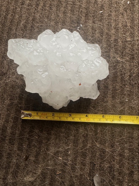 Sounds like 3” hail absolutely raked the city however