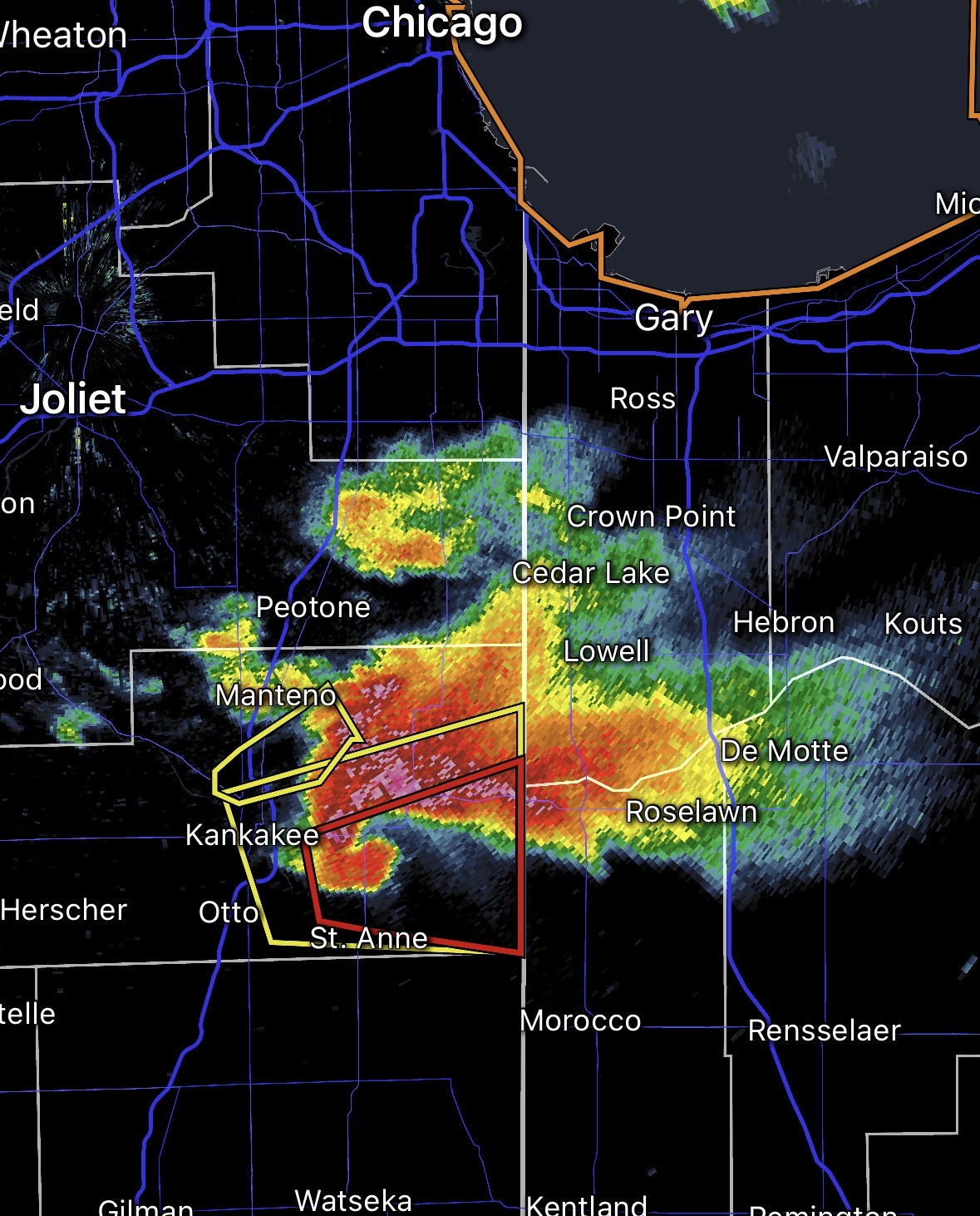 Damn yeah our sirens are off. Looks like it’ll go just south of me in Momence