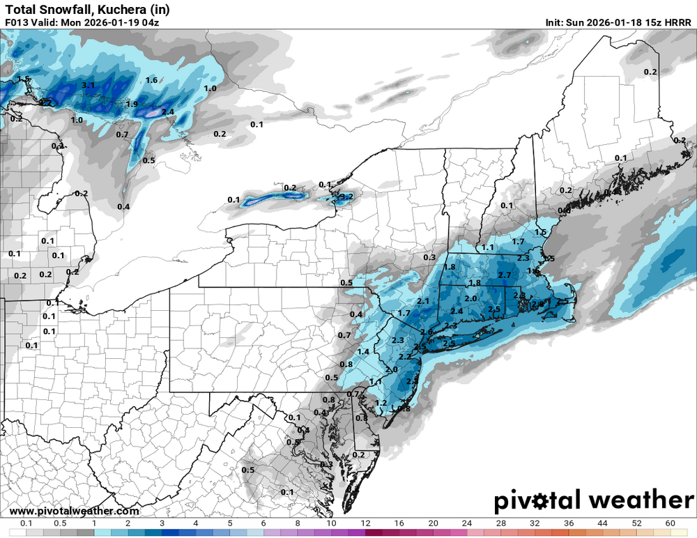 Rhode Island and East Mass will do well with this one regardless. Most in NYC metro have under an inch so far, so this would verify on the low end of the regionwide 3-5" winter weather advisory.