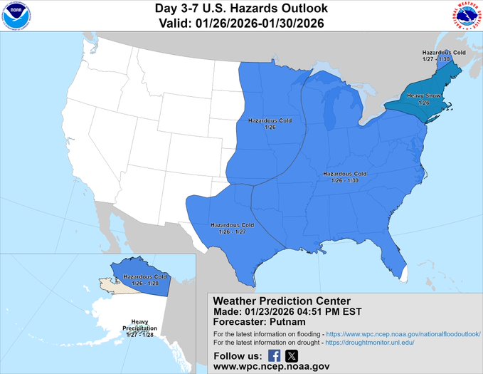 NWS keeping big totals in forecast for NW zones. ...MAJOR WINTER STORM WILL IMPACT THE REGION THIS EVENING THROUGH SUNDAY EVENING... .A large area of precipitation will overrun Arctic air in place over the Mid-Atlantic. This will lead to widespread significant snow beginning this evening, with the potential for ice Sunday especially south of Highway 50 and near and east of Interstate 95. In addition to the high threat for significant snow and ice, very cold temperatures are expected tonight through the middle of next week with sub-zero wind chills likely at times. MDZ003>005-502-VAZ028-030-031-040-501-505-WVZ050>053-504-250215- /O.CON.KLWX.WS.W.0001.260125T0400Z-260126T0900Z/ Washington-Frederick MD-Carroll-Central and Eastern Allegany- Frederick VA-Warren-Clarke-Rappahannock-Northern Fauquier-Western Loudoun-Hampshire-Morgan-Berkeley-Jefferson-Eastern Mineral- 115 PM EST Sat Jan 24 2026 ...WINTER STORM WARNING REMAINS IN EFFECT FROM 11 PM THIS EVENING TO 4 AM EST MONDAY... * WHAT...Heavy mixed precipitation expected. Total snow and sleet accumulations between 9 and 13 inches, with up to 16 inches possible in western Maryland. Ice accumulations up to a tenth of an inch, mainly across the northern Shenandoah Valley. * WHERE...Portions of north central and western Maryland, northern and northwest Virginia, and eastern and panhandle West Virginia. * WHEN...From 11 PM this evening to 4 AM EST Monday. * IMPACTS...Travel could be very difficult to impossible. * ADDITIONAL DETAILS...Snow will likely overspread the area tonight, becoming heavy at times with rates of one to two inches per hour possible at times. A mix with sleet or freezing rain is expected Sunday. Visibility of one-quarter mile or less is possible at times. A prolonged period of very cold wind chills continues this evening and lasting through the middle of next week. -