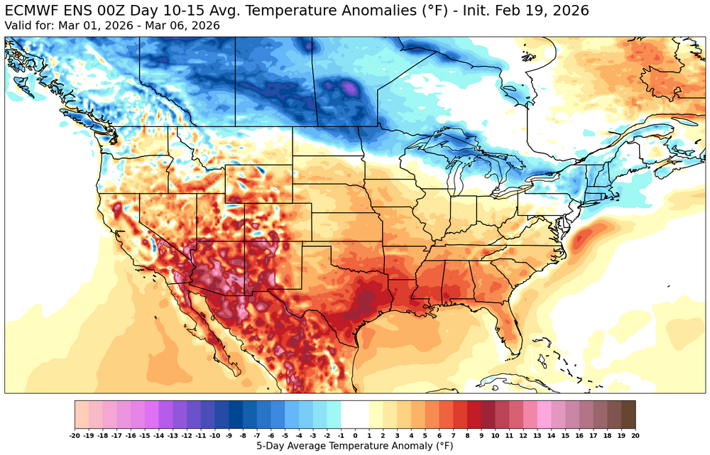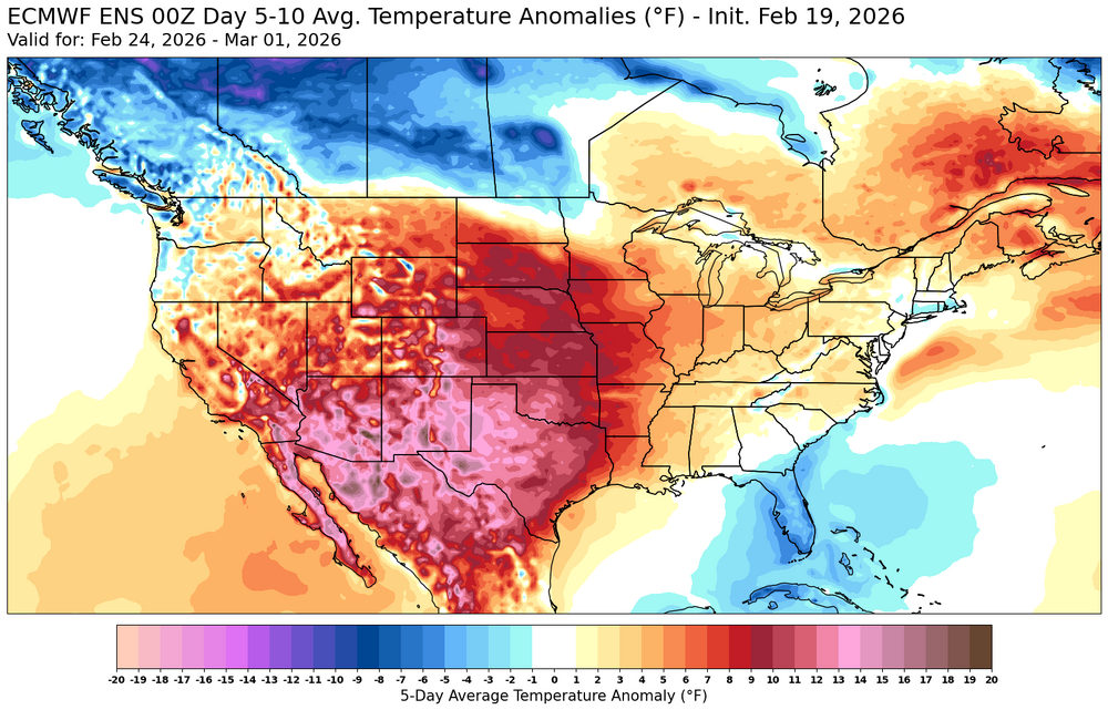 Even though we rebounded back into the 40s since early February, the warmest departures have been missing miss the Northeast relative to other regions. So the Northeast continues to hold into the colder pocket compared to the rest of the CONUS. The forecast into early March looks like more of the same.