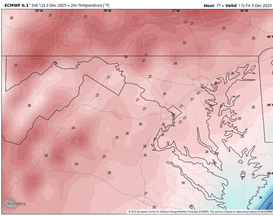 32.9/23.7 in Havre de Grace. Zero expectation of accumulation but would be cool to see some flakes.