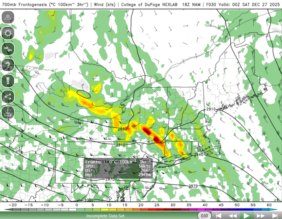 Kind of seems like dry air and some subsidence would be an issue on the NAM. This would be a verification mess. You would probably get some spots getting 4-6” and then some spots barely getting 1-2”…and probably within close proximity. But can’t really buy this yet or take any value from it. If the GFS/Euro hold serve this can probably be tossed. Wonder where RRFS will go -