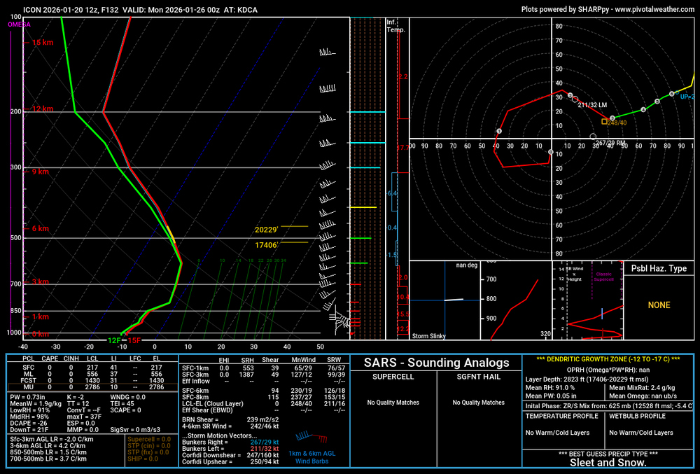 for illustrative purposes, here a sounding for DCA Monday 00z showing that warm(er) nose up at 700 producing a mix of sleet/snow (or at least lower ratio snow)