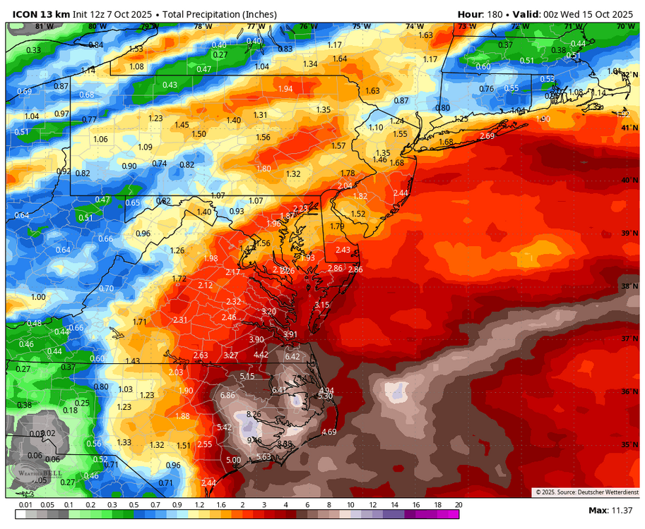 I'm hugging the ICON for the upcoming storm. It nailed the track of the last coastal. (WB 12Z: about .25 is for Wed.)