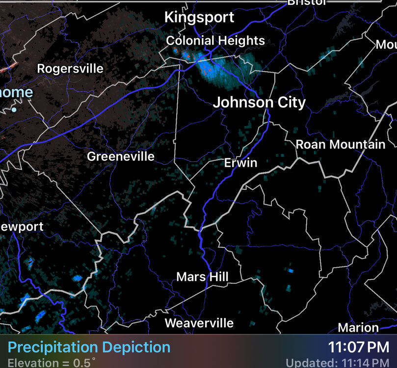 Stepped outside just now and noticed a few flurries. Looked at the radar and noticed the infamous Bays Mtn. Snow band has set up!! I’m not sure if it ever got going last year? At any rate, sure enough there she be!