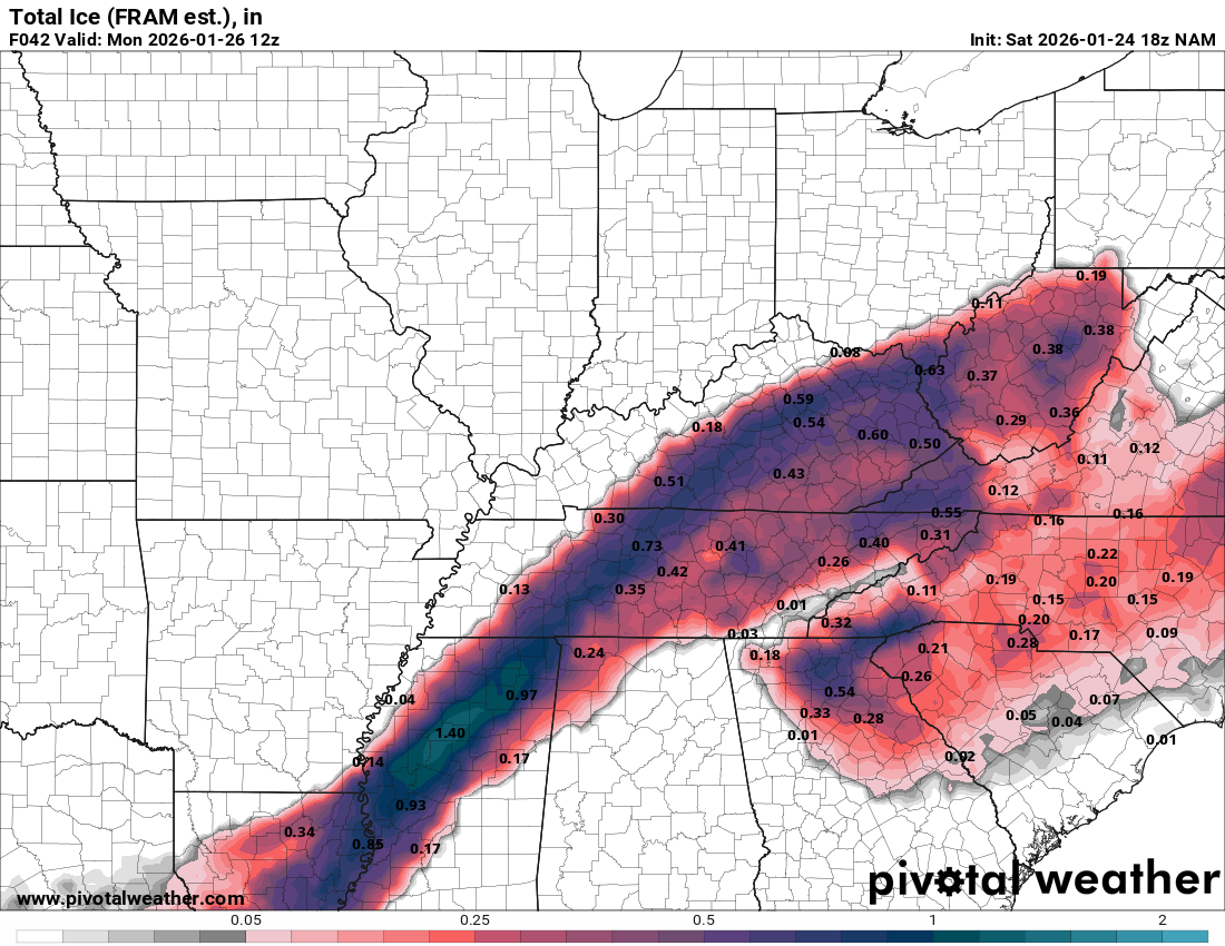 Since we’re on the conversation of power, keep in mind there’s two distinct outage waves in an ice event: 1. The event itself as totals get heavy for obvious reasons 2. Usually, the next part comes as you think you’re out of the woods. When the lines start shedding weight (I.e. if we get above freezing tomorrow night or Monday), that weight gets released and it causes them to bounce and snap back to form like rubber bands. When the lines bounce and contact each other, it’ll cause an outage then as well.
