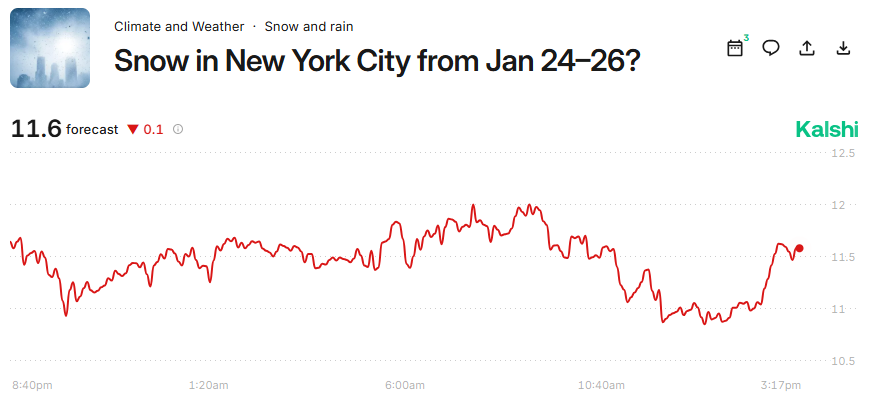 Betting markets (smart money) likes the 18Z NAM for an additional 0.6" inches vs. prior to run, for an over/under for CPK is now 11.6" for the storm. -
