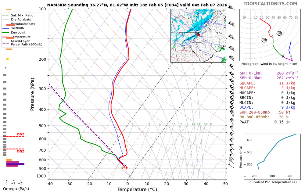 Yeah, especially the CCTI side of town. The bypass area always scores during these type systems. Can see some wide variance from the bypass towards Deep Gap but the NAM has pretty deep moisture for a while tomorrow afternoon/night. -