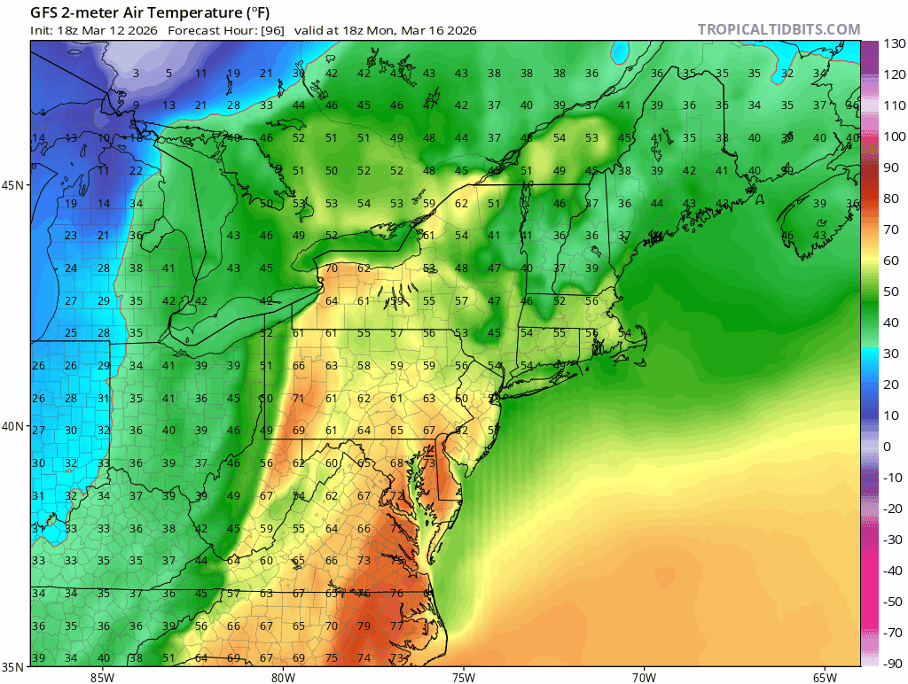 ahead of the storm in the northeast we had arctic cold, those are days long past by for mid march.