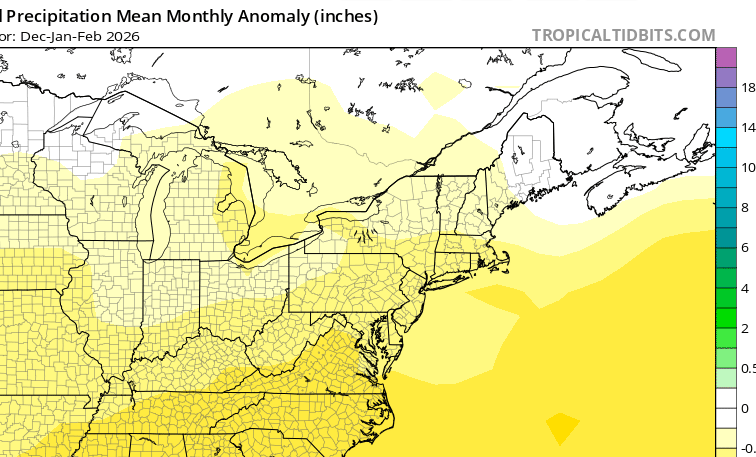 JFM looks around normal precip for most of SNE....precip is probably the most inaccurate aspect of seasonals, anyway, which remain relatively inaccurate in general. Seems like there maybe some late developing Miller B events that are going to pop in the N stream. Latest run has picked up on this more, as it's not as dry in New England. -