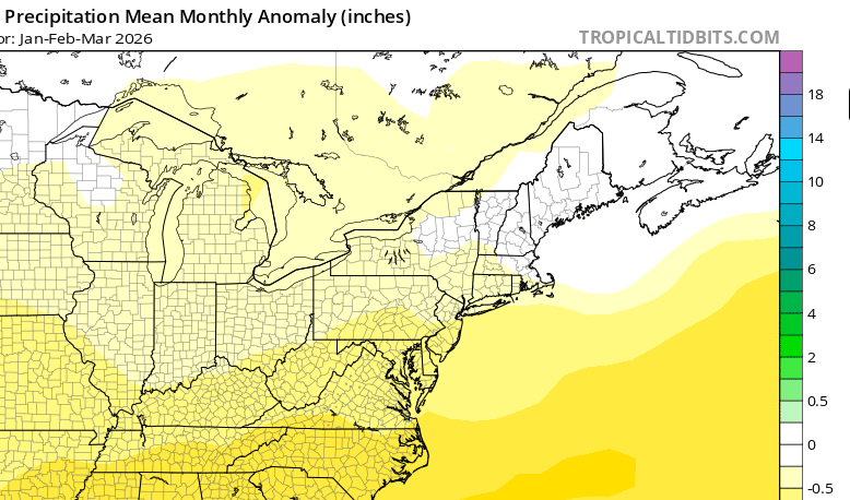 Yep. It did get cooler for Dec-Mar in the northeast since the last update, but boy does it have a strong dry signal from November-March in the east, with the lone exception of eastern New England for March like you said. That dry signal increased since the last update