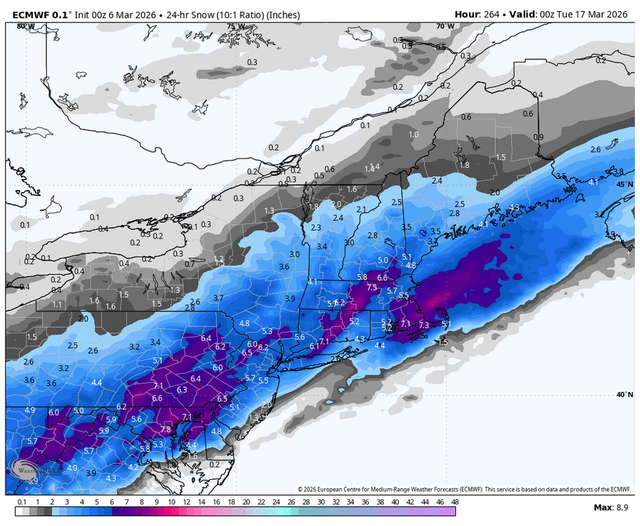Way out there but this next window is the last to: 1.) Get CPK to 50 inches 2.) Give Providence their all time snowiest winter!!!! Unlikely given that March only had 5 inches or more when December had the same FOUR TIMES since 1970.