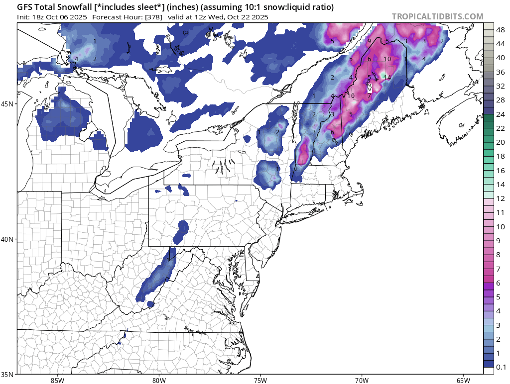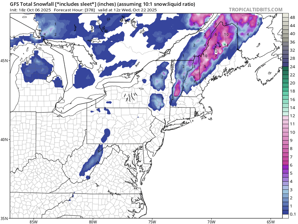 FWIW.. for fun mostly lol. Here's the euro seasonal snowfall forecast for this coming winter ... I wouldn't put a lot of stock in this but still fun to look at.