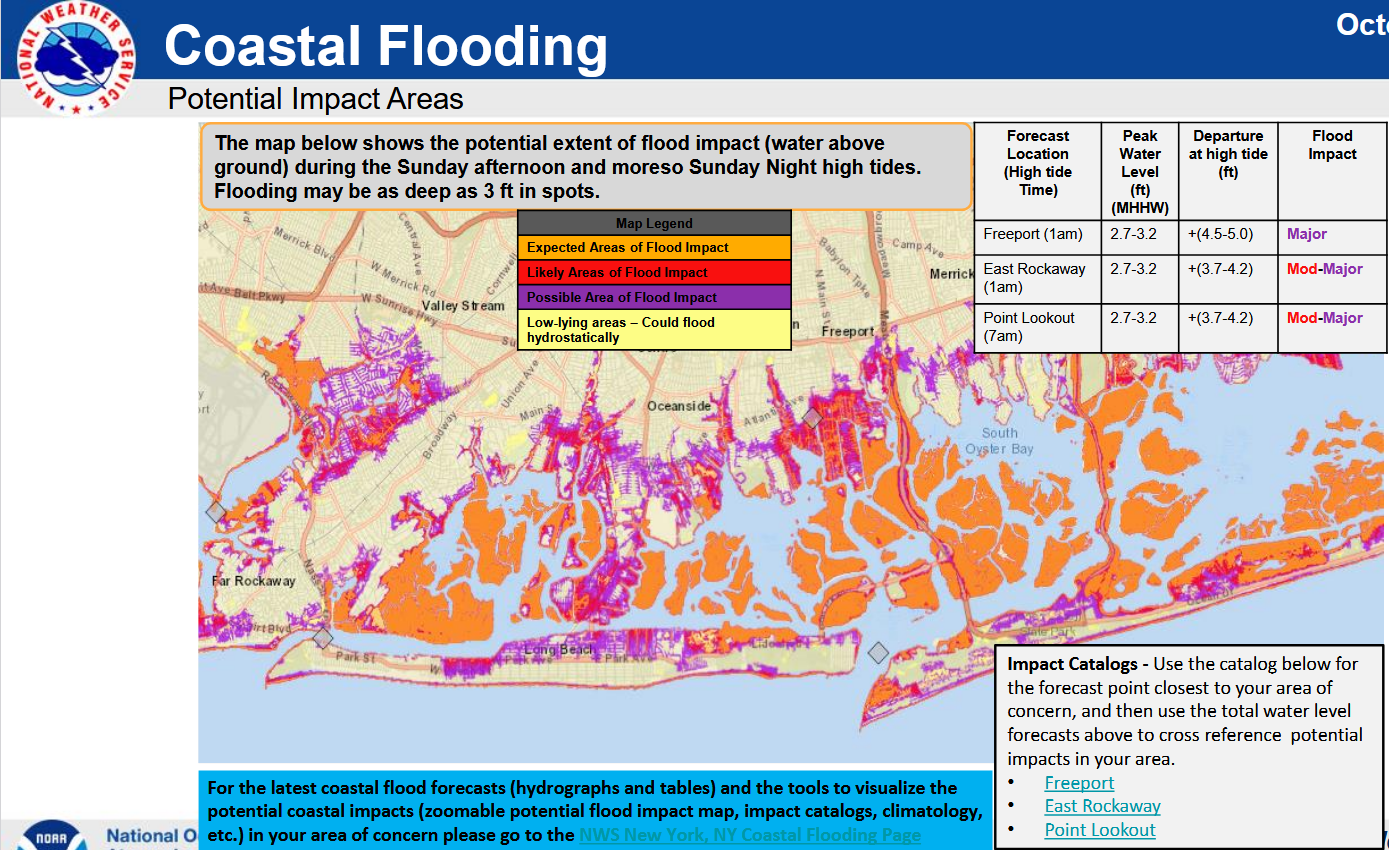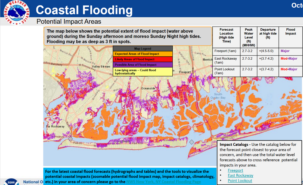 Follow NWS warnings and statements. Probably a good idea to plan altnerate travel plans Sunday afternoon-Monday night. Air travel will be impact as well roads. Deeper bands of heavier gusty rains Sunday night-Monday morning then low top steady light-briefly mdt rain Mon afternoon-night. I could be in error on my take but what am prepared for in the NYC subforum. Am not exactly sure what is out by NWS. I think they have the CFWRNG's out, if not...going to happen, probably 3 cycles of MDT, possibly a major in there Monday-also dependent on the sub basins, especially packing in on the northeast wind. Follow NWS. Coastal flooding also will have a river runoff component at the interface between incoming ocean waves, wind, elevated water level and dealing with 1-3" of rainfall runoff attempt into the ocean-marshes etc. My guess is that the HWA will convert to warnings on the coasts, for sct G50-60MPH, with the warning approach from my view, exacerbated by wet coastal ground, uproots and fully leaved wet leaves breaking branches Sunday evening-Monday. Could see few g45 MPH western NJ/se NYS and CT as well Sun night-Monday morning. Isolated inland flood warning in NJ (Ocean-Monmouth) Monday morning???? if some of the outlier model 4-6" materializes. Rainfall dependent. Modeling and WPC has consistently highlighted Ocean and Monmouth counties for biggest rainfall past few days. WPC trimmed qpf slightly in its early morning forecast. I'm expecting a little more than what they have, similar to early yesterday's 10z/10 forecast. Back later in the day. Will convert headline this afternoon to add OBS, but do add OBS rainfall from today when it occurs.