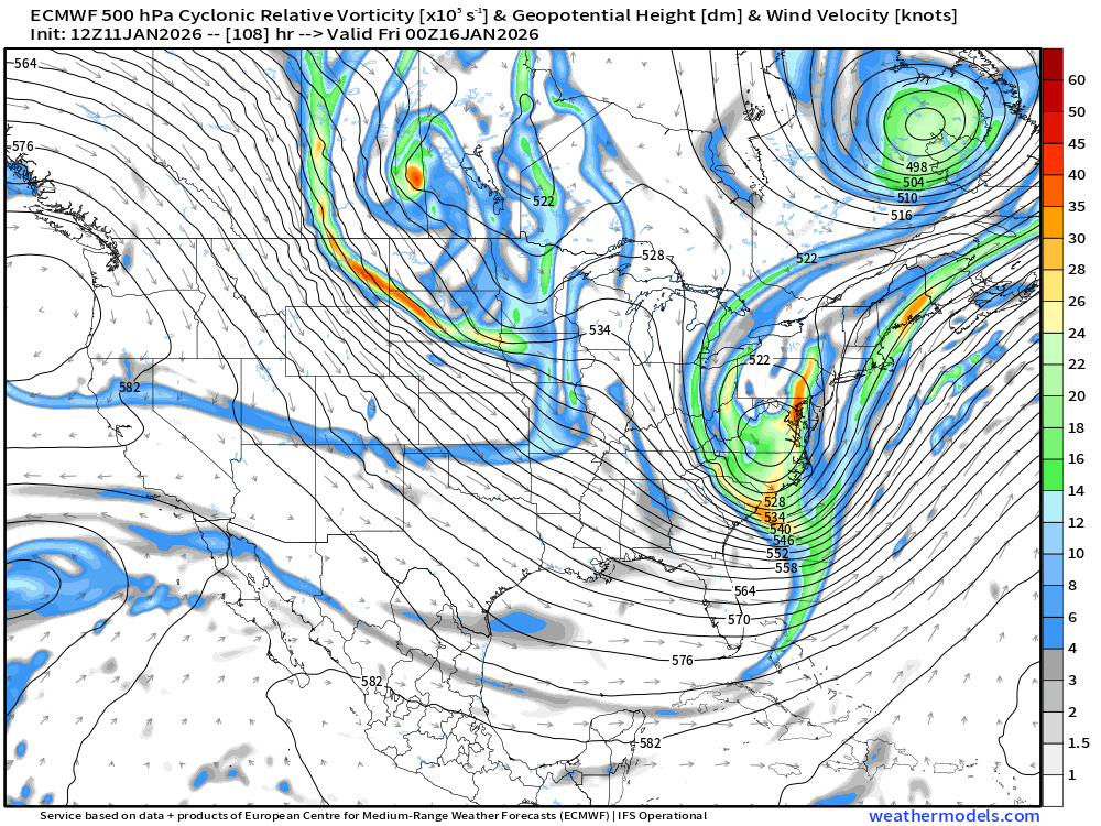 Heres vorticity at 108 which is generally further north than its 6z counterpart.