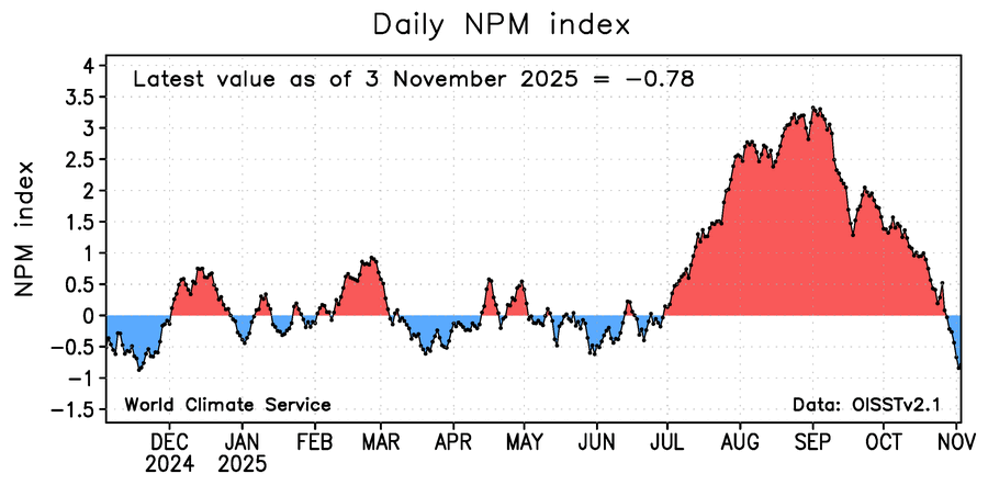 I was commenting on this a while back. That NE PAC warm blob is more a function of the forcing over the WPAC region. It really isn’t a stand-alone forcing or feedback mechanism like the subtropical and tropical WPAC warm pool east of Japan. So we just saw the greatest fall drop since the fall of 2019.