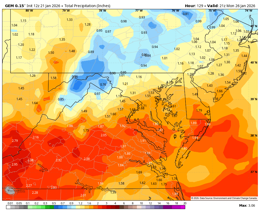 The Canadian is NOT a good model and I wouldn’t be concerned with it at all unless it started moving back towards a more suppressed look. It’s over amplifying the trough and not handeling the airmass to the North well. -